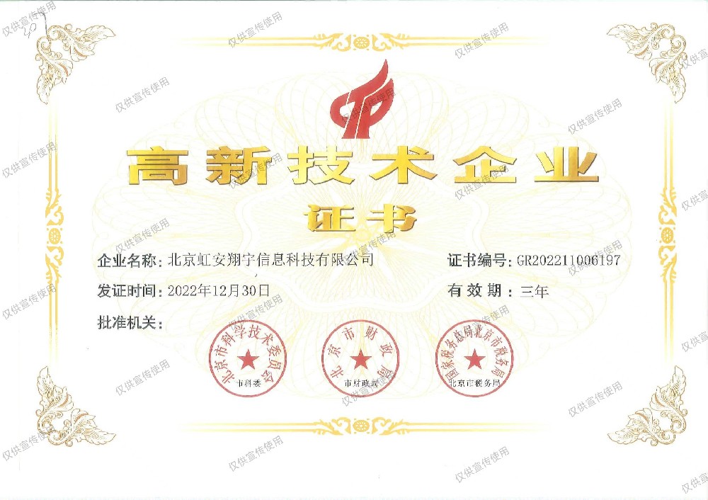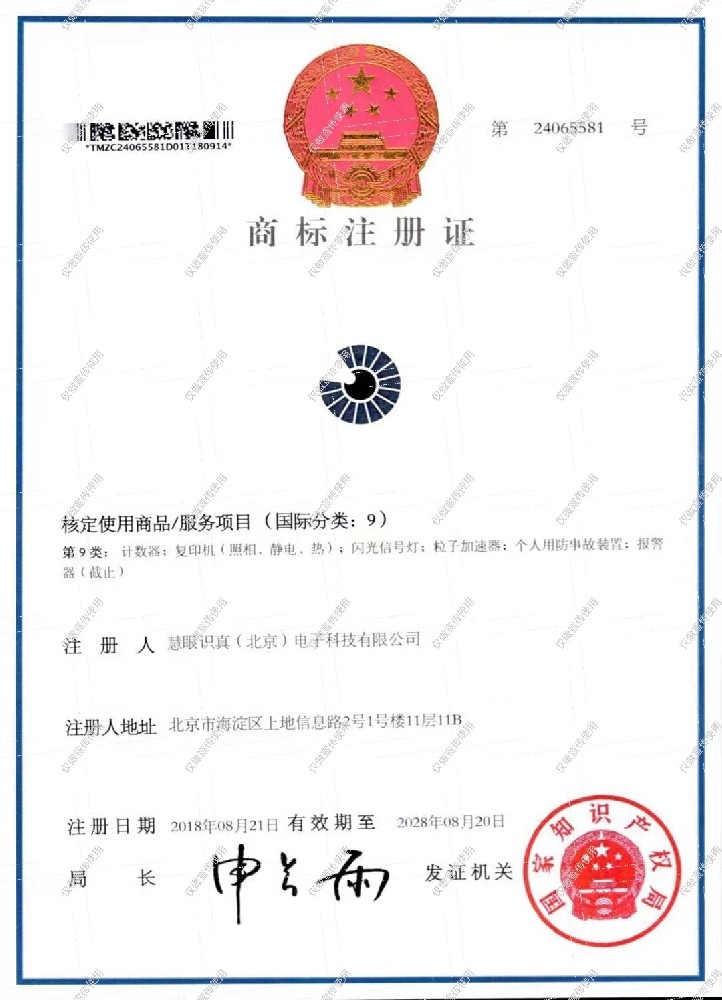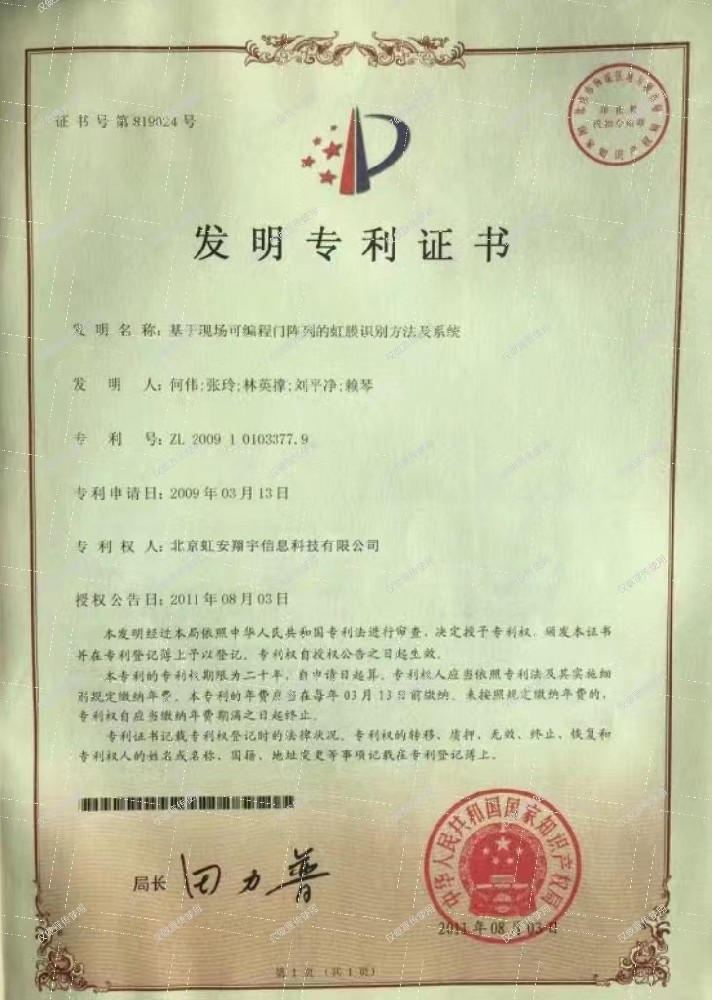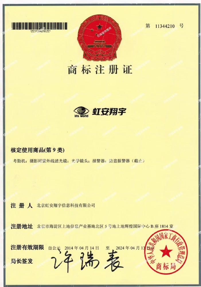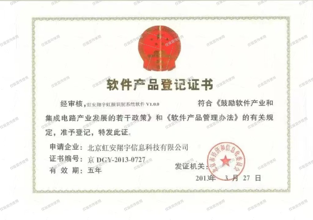 软件产品登记证书-虹安翔宇虹膜识别系统软件V1.0.0