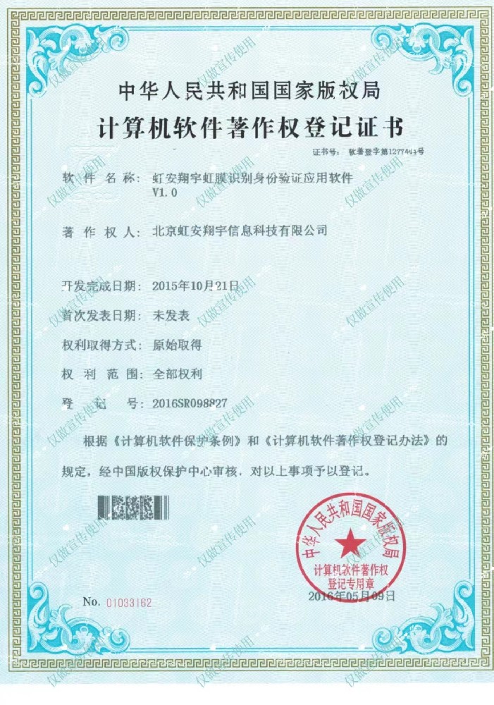 虹安翔宇虹膜识别身份验证应用软件V1.0